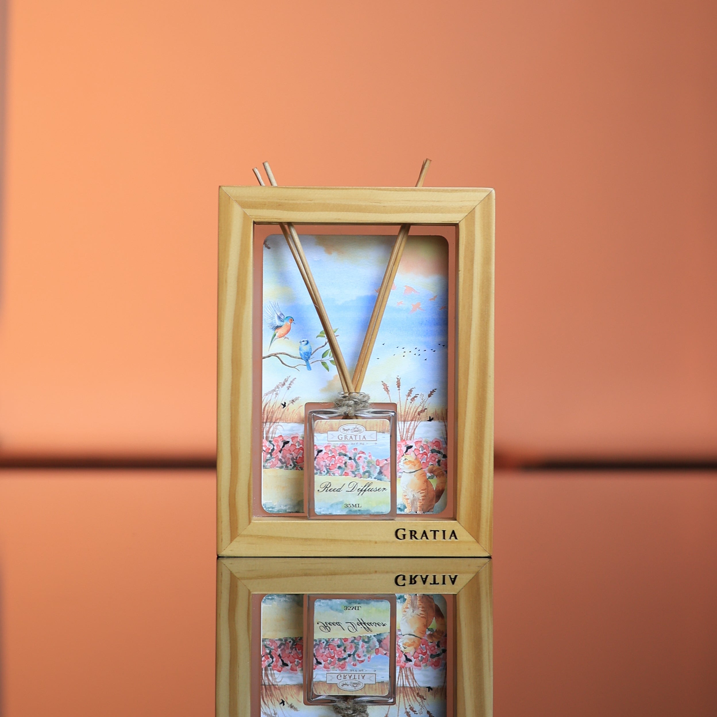 Refresh your space with the uplifting aroma in this elegantly framed Reed Diffuser, designed to blend fragrance with décor.Its crisp Fruity notes gently energize the ambiance while the artistic wooden frame adds a warm, sophisticated touch to any corner of your home.